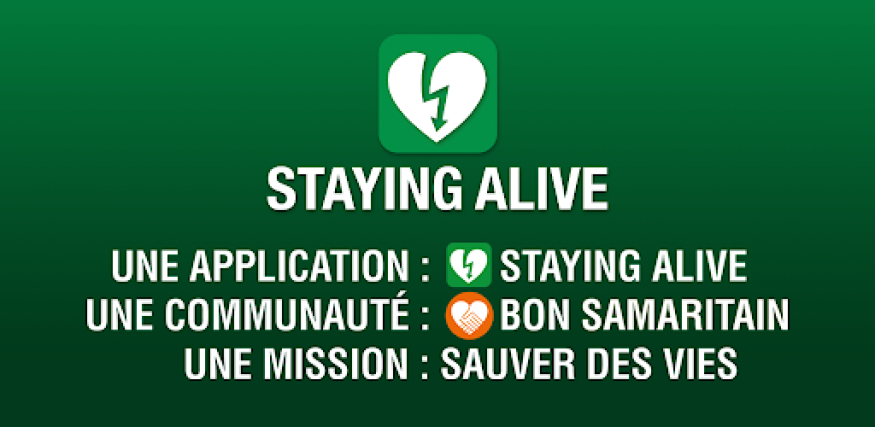 Staying alive est une application gratuite que vous pouvez télécharger sur smartphone et qui permet d'avoir la carte des défibrillateurs les plus proches mais aussi de savoir où sont ce qu'on appelle les bons samaritains qui peuvent intervenir en cas d'urgence car ils sont formés aux gestes de premiers secours.